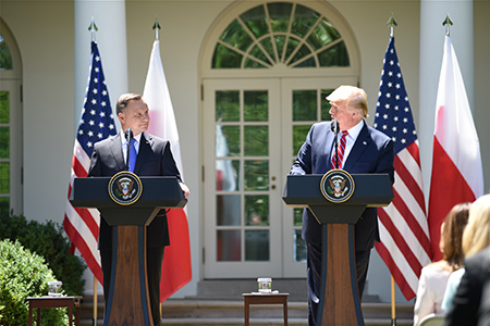 特朗普隨後在玫瑰園舉行的聯合記者會上透露,波蘭同意購買32架F-35戰機,並將從美國購買總值約80億美元的液化天然氣。雙方還簽訂了意在擴大民用核能領域合作的合約。