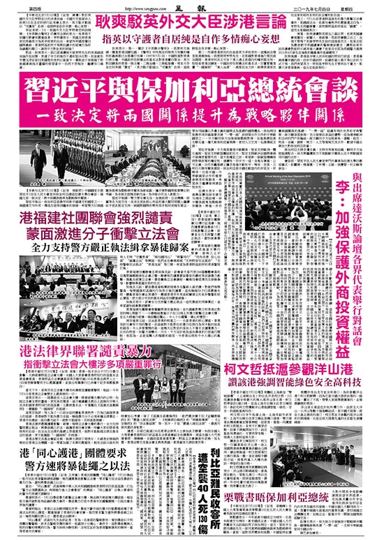 周安達源又說,法治是香港的根基之一,也是香港的核心價值。香港容許社會有不同的聲音,但是絕對不能對任何暴力犯罪行為有半點的姑息和縱容。令人非常憤慨的是,這幾天反對派的某些人不僅不去譴責暴力,反而向特首、向警方潑髒水、污水,千方百計地為這些暴徒的行徑進行開脫。他認為,正是這幫人的煽動和縱容,令香港出現如今令人痛心的亂局。
