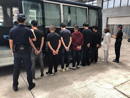 涉案人士交由司法警察局處理,其餘案件中有5名男子涉嫌觸犯第6/2004號法律第14條『協助』罪,而當中1人涉嫌同時觸犯第15條『收留』罪,已被移送檢察院偵辦,餘下7