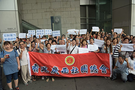 逾10個團體、組織包括香港工會聯合會、香港島各界聯合會、香港海南社團總會、香港福建社團聯會、香港安徽聯誼總會、香港廣西社團總會、江蘇旅港同鄉聯合會、北京海外聯誼會、“保衛香港運動”、“反黑金反港獨關注組”、香港東區各界協會等。