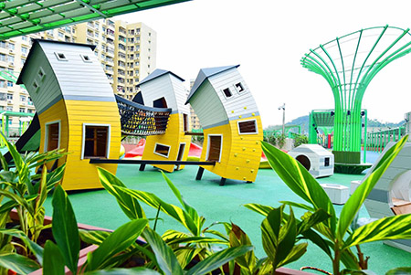 兒童遊戲區:安裝具特色遊戲設施,旁邊設有特色藝術座椅,為兒童創設生動有趣的戶外活動空間。