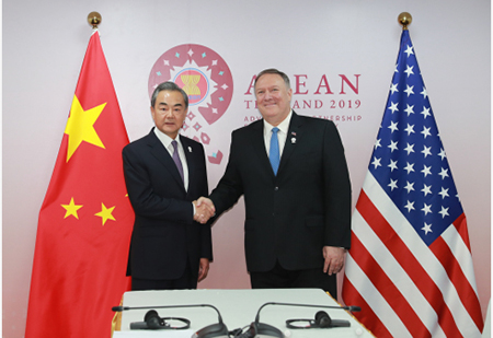 【中新社曼谷8月1日電】(記者 王國安)中國國務委員兼外交部長王毅8月1日在泰國曼谷會見美國國務卿蓬佩奧。
