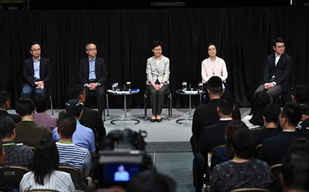 林鄭月娥表示,期待與市民坦誠交流,無論各人的立場和意見如何,相信大家的共同目標都是為香港好。