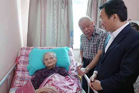 【特訊】農曆九月初九「澳門特別行政區長者日」將至,社會文化司司長譚俊榮近日探訪了本澳兩名年逾百歲長者的家庭,了解家人照顧長壽長者的生活點滴和相處之道,聆聽他們對特區政府長者服務的意見及建議,社會工作局局長黃艷梅等隨同探望。家住氹仔的張婆婆已一百○五歲,與七十三歲的兒子陳先生一家同住,雖行動不便,卻在兒孫的悉心照料下安享幸福晚年。陳先生表示,母親年輕時辛勞地照顧一家,作為兒子應盡孝道和責任照顧母親,報答養育之恩。雖然自己年紀也大了,照顧高齡母親偶感吃力,但堅持同食同住,讓母親時時感受親情,享受天倫之樂。
