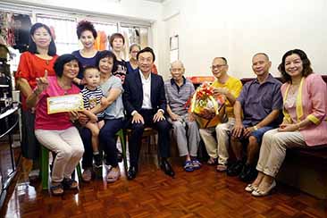 譚俊榮親切慰問張婆婆和羅伯伯,稱讚他們教子有方,生活規律,精神樂觀,並祝願二人長壽健康。在兩個溫馨家庭中,譚俊榮先後與二位百嵗耆英的同住子女促膝相談,盛讚兩個家庭均體現了中國傳統優良美德「百行孝為先」,對高齡父母不離不棄、照料體貼,也正是特區政府所鼓勵的「家庭照顧,原居安老」的傑出模範。