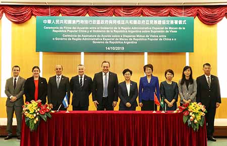 【特訊】《中華人民共和國澳門特別行政區政府與阿根廷共和國政府互免簽證協定》的簽署儀式昨日(10月14日)在澳門特別行政區政府總部舉行。