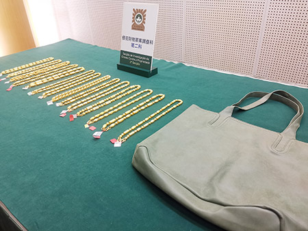 【特訊】五名菲律賓男女懷疑組織偷竊團夥,前日在友誼大馬路一間珠寶店佯裝顧客,以聲東擊西的方式,在短短三分鐘偷走十四條總值五十四萬港元的金鍊。五名賊人迅速乘的士到機場,成功辦理登機手續到達禁區,以為可逃脫,治安警方先將五人拘捕,轉交司警接手調查,起回全部贓物,案件已移交檢察院處理。