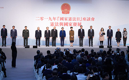 【香港中通社12月4日電】(記者 江陽)以“憲法與國家發展”為主題的2019年“國家憲法日”座談會4日在香港會議展覽中心舉行,近700名嘉賓參加。這是香港特區連續第三年舉辦“國家憲法日”座談會。