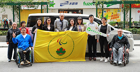 交接儀式十九日上午在殘奧會會址舉行,由陳倩雯將福祉車鑰匙交給殘奧會理事長菲能地。