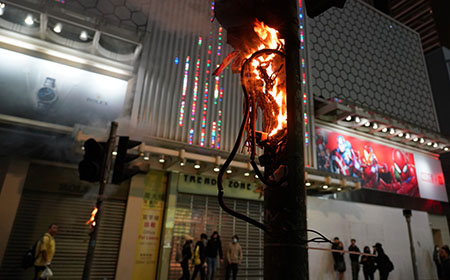 香港暴徒毀交通燈設備