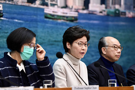 【香港中通社2月3日電】(記者 卓隆)香港特區行政長官林鄭月娥3日宣布,4日零時零分起,進一步停止羅湖、落馬洲支線、皇崗和港澳客輪碼頭四個口岸的運作。她還批評,部分醫護人員以極端手段威逼政府,對此無法認同,強調他們不會得逞。