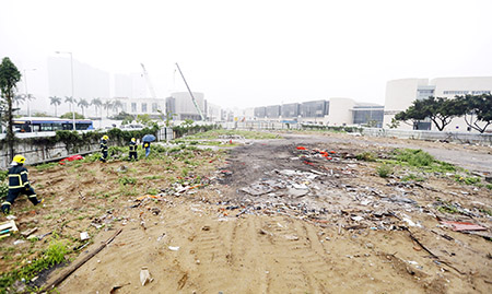 有關土地外圍現時建有金屬坑板及閘門,土地工務運輸局已向相關利害關係人發出勒遷通知書,要求於限期內騰空並交還土地。鑑於自願遷離期限屆滿而相關土地尚未交還,政府今日採取跨部門聯合清遷行動,一併將上述土地收回,並作騰空及清遷整治。