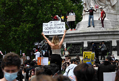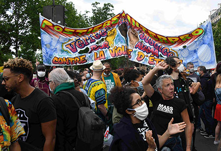 當天的遊行示威活動依然是美國弗洛伊德事件引發的。美國明尼阿波利斯市白人警察5月25日在拘捕非洲裔男子弗洛伊德時用膝蓋持續壓迫他的頸部,弗洛伊德死亡,4名涉案警察隨後被起訴。同時,法國本國的“阿達瑪案件”也被一些示威者關注。