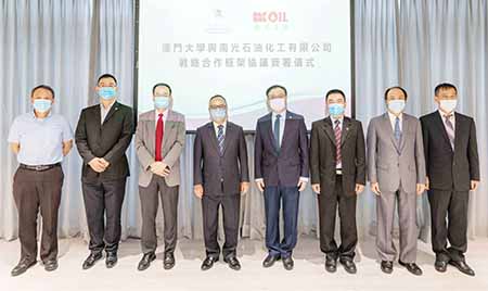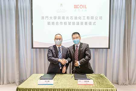 《澳門大學與南光石油化工有限公司戰略合作框架協議》由澳大校長宋永華及南光石油總經理唐朝暉共同簽署。其他出席協議簽署儀式的嘉賓包括:南光集團副總經理王彤彥、澳大副校長葛偉、澳大研究服務及知識轉移辦公室主任楊志新、南光石油常務副總經理劉鍵生、澳大智慧城市物聯網國家重點實驗室教授及科技學院電機及電腦工程系主任黃民聰及南光集團企業管理部助理總經理張海軍。