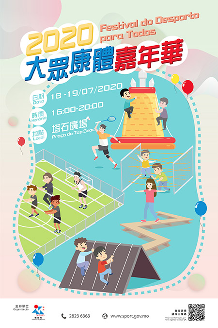 【特訊】由體育局主辦的「2020大眾康體嘉年華」,將於7月18日(周六)及19日(周日)下午4時至晚上8時在塔石廣場舉行,主辦單位希望透過舉辦大眾康體嘉年華活動,引起市民對體育運動的興趣,推動市民積極參與體育鍛煉,提升身體素質。