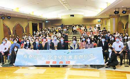是次比賽以「齊心抗疫,大愛無疆」為主題,分書法組和繪畫組,合共選出了二百一十六幅得獎作品,由澳門九位書畫、美術界資深人士擔任評委。書法初小、高小、初中、高中組的一等獎分別由婦聯學校的廖宇曦、濠江中學附屬小學的梁惠怡,以及濠江中學的梁曉晴和吳詠琳獲得。繪畫初小、高小、初中、高中組的一等獎分別由濠江中學附屬英才學校的梁心玥、培正中學的顏靖漪、鏡平學校的余佩霖、濠江中學的吳詠琳獲得。除了得獎學生,大會亦向所有參加徵稿活動的學生致送「鼓勵狀」,以及向所有參與學校致送「感謝狀」。