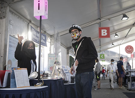 2日,在市政廳投票中心設在戶外的投票點,騎自行車而來的華裔女士莊淑臻參加了“人生第一次投票”。她說,自己平時並不關心政治,對選舉也有一種恐懼感,今天填選票的時候甚至很緊張。但是,她對美國的一些現狀比較憂慮。她說,現在的美國,在國際關係、防疫等方面都需要“改革”。