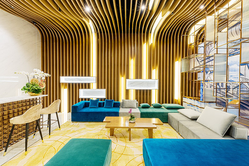 全新的BESPOKE雋環專屬貴賓室位於澳門壹號廣塲二樓,是澳門著名的葡藉建築師Carlos Marreiros之大師級傑作,採納澳門壹號廣塲獨具標誌性的波浪線條設計,令貴賓室與東西方的建築美學完全地融為一體。