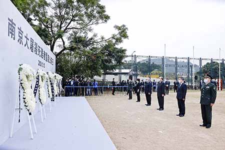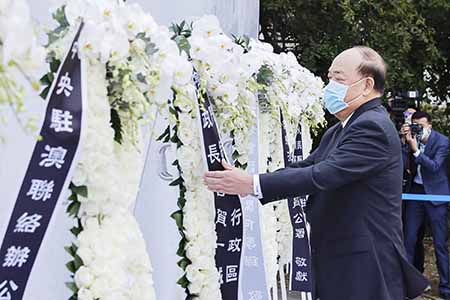 昨日是南京大屠殺死難者國家公祭日,特區政府在路環保安部隊高等學校操場舉行公祭悼念儀式,行政長官賀一誠、全國政協副主席何厚鏵、中聯辦副主任張榮順、外交部駐澳特派員公署署理特派員王冬、駐澳部隊司令員徐良才、駐澳部隊政治委員孫文舉,以及特區政府主要官員及社會各界人士等近三百人出席。