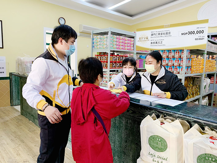 今年,為配合澳門特區政府的防控疫情指引,避免人群聚集,受惠家庭將分組於不同日子及時段到仁慈堂社服店領取食物籃。