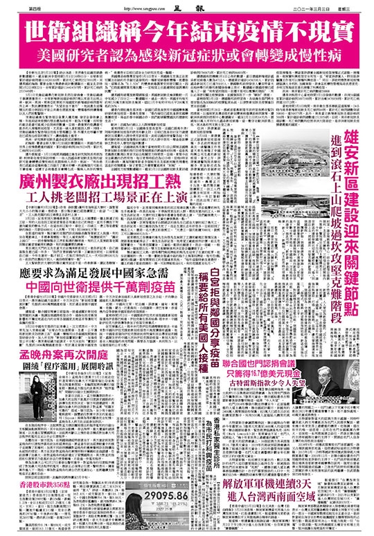 當前報章2021年03月03日