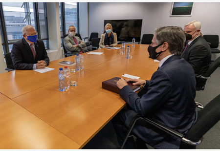 布魯塞爾時間24日晚,布林肯與博雷利舉行會晤。據歐盟對外行動署發佈的公告,雙方就加強歐美關係交換了意見,就應對外交、安全、經濟等領域的重點問題進行了協調,確認將共同應對氣候變化、抗擊新冠肺炎疫情、促進可持續經濟復蘇等全球性挑戰。