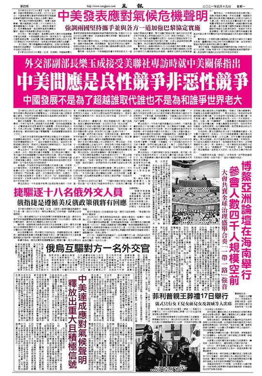 中美發表應對氣候危機聲明 強調兩國堅持攜手並與各方一道加強巴黎協定實施