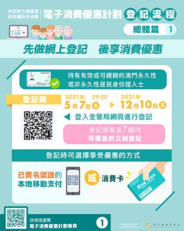 【特訊】根據昨日(6)日公佈於《澳門特別行政區公報》的第15/2021號行政法規《電子消費優惠計劃》及第72/2021號行政長官批示,“電子消費優惠計劃”的登記期將於明(7)日開始,至12月10日完結。登記期長達7個月,時間充裕,呼籲居民毋需急於立即登記。