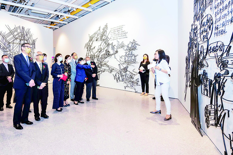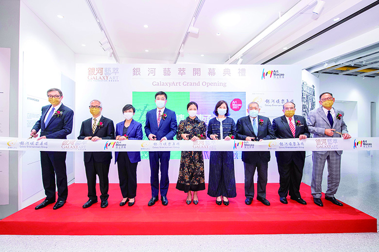 【特訊】銀河娛樂集團(下稱「銀娛」)多年來積極支持及參與由澳門特別行政區政府主辦的大型文娛康體活動,協助推動澳門「世界旅遊休閒中心」之定位。昨日,由銀娛旗下銀河娛樂集團基金會(下稱「銀娛基金會」)籌辦之非營利藝文空間「銀河藝萃」於「澳門銀河™」隆重開幕,並推出其首個藝術展覽項目《傳情.傳承》。作為由澳門特區政府社會文化司及經濟財政司指導,文化局及旅遊局主辦的第二屆「藝文薈澳:澳門國際藝術雙年展二○二一」的特展項目,《傳情.傳承》透過馬來西亞藝術家鄧文建精心塑造的一系列巨型金屬裝置,描繪澳門長久以來的人文風情,展現澳門深厚的歷史文化魅力。展覽於即日起免費對外開放。昨日下午,社會文化司司長代表羅灝芝、中央人民政府駐澳門特別行政區聯絡辦公室宣傳文化部部長萬速成、文化局局長穆欣欣、旅遊局局長文綺華、銀娛基金會信託委員會獨任監事崔世昌、成員黃如楷及華年達博士、銀娛副主席呂耀東及董事程裕昇等出席「銀河藝萃」開幕典禮並擔任主禮嘉賓,在一眾貴賓的見證下,為此長期營運、非營利的藝文空間揭開序幕。