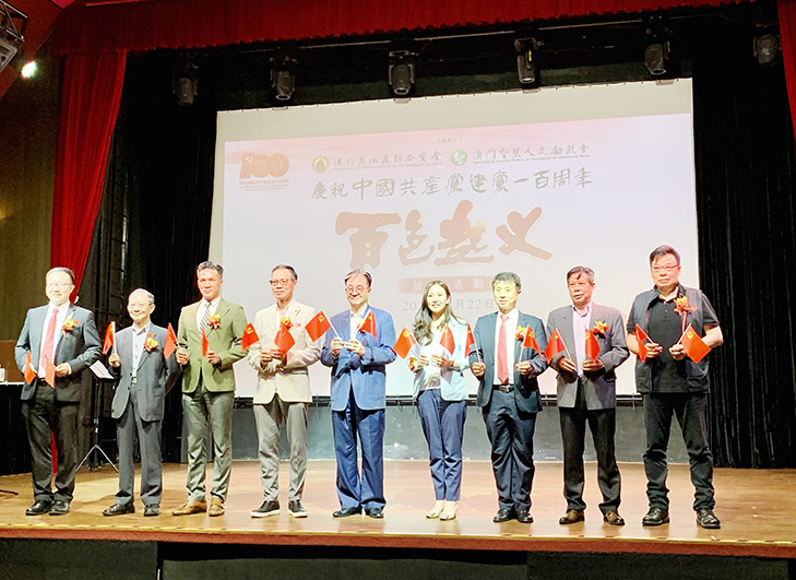 【特訊】為慶祝中國共產黨建黨一百周年,房地產聯合商會、智慧人文勵政會合辦電影《百色起義》放映活動,期望向青少年潛移默化推動黨史的學習,感受革命年代的艱辛,從而更加珍愛如今的太平盛世,並加深愛國愛澳精神,使得「一國兩制」事業薪火相傳。《百色起義》放映活動昨日假國華戲院大舞台舉行,出席嘉賓包括中聯辦宣傳文化部代表李嘉欣,房地產聯合商會兼智慧人文勵政會會長吳在權、房地產聯合商會副會長李廣志、理事長關偉霖、副會長黃志鈞、柯慶耀、監事長趙康池及智慧人文勵政會理事長廖信君等。