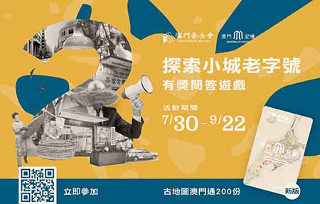 問答遊戲由即日起至2021年9月22日於線上舉行,活動冀通過輕鬆有趣的形式與市民探索“澳門老字號”,藉以進一步加深對相關行業蛻變和社區發展的了解。此外,為鼓勵市民積極參與活動,本期問答遊戲只需於限定時間內回答20條選擇題,且得分達60分或以上即可參與抽獎活動。本期獎品豐富,設200份含50澳門元面值之新版“澳門記憶”珍藏版古地圖澳門通。