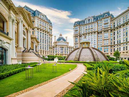 作為許多遊客抵達澳門的第一站,澳娛綜合旗下新葡京酒店蓮花外型非常矚目,被認為是必要走訪的澳門地標。而最近,嶄新地標「上葡京」已開幕,為赴澳旅客帶來嶄新住宿體驗。在「四川‧成都澳門週」的路演現場,澳娛綜合將在會場主舞台為觀眾呈獻「成雙成對成婚殿」舞蹈演出,以「上葡京禮堂」作為舞台背景,上演一段浪漫與夢幻交織的婚禮預演。並於展位進行以「邂逅經典」為主題的展演,一展葡京品牌風采。