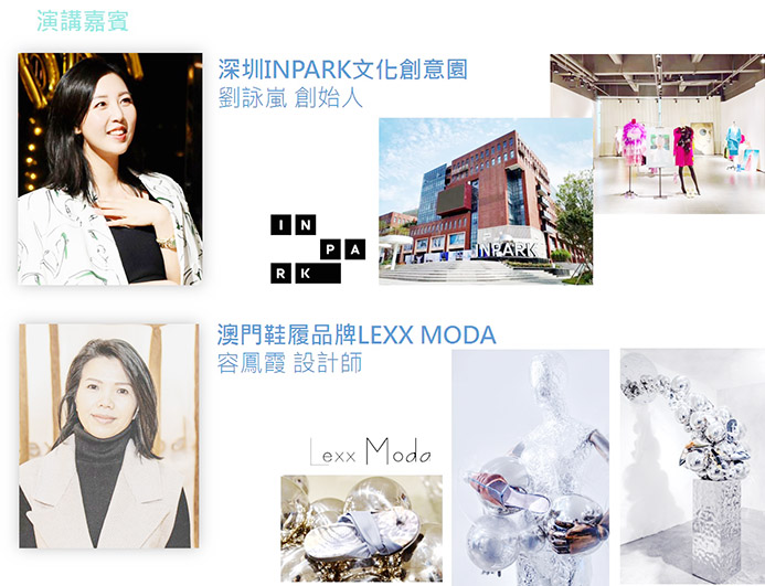 是次交流會邀請深圳INPARK文化創意園創始人劉詠嵐及澳門鞋履品牌Lexx Moda設計師容鳳霞擔任主講嘉賓,她倆會分別就深圳INPARK文化創意園、澳門品牌進駐該園區、雙方合作模式進行介紹;屆時兩位亦將分享現時兩地的合作機遇及優勢,參加者可以透過是次交流會了解澳門文創產業的商企如何透過拓展大灣區市場,提升其知名度及開拓商機等。
