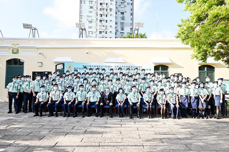 【特訊】澳門童軍總會昨在童軍總會總部舉行慶祝中國共產黨成立一百周年、中華人民共和國成立七十二周年、澳門特別行政區成立二十二周年及二零二一年度澳門童軍總會周年頒獎典禮,共有一百三十七名童軍獲嘉許。澳門總監梁顯方勉勵全體童軍再接再厲,將童軍精神薪火相傳,為國家和澳門培育出有理想、負責任、肯承擔的青年。