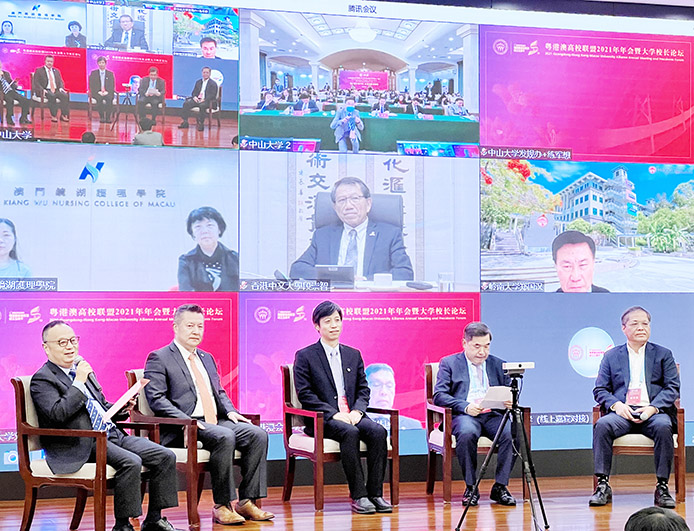 【特訊】粵港澳高校聯盟昨日(22)日舉行「粵港澳高校聯盟2021年年會暨大學校長論壇」。在聯盟成立五週年之際,來自粵港澳三地的高校領導及代表於線上線下共聚一堂,圍繞「凝心聚力有作為,開局謀篇啟新程」的主題交流討論,共同推動粵港澳高等教育的發展。