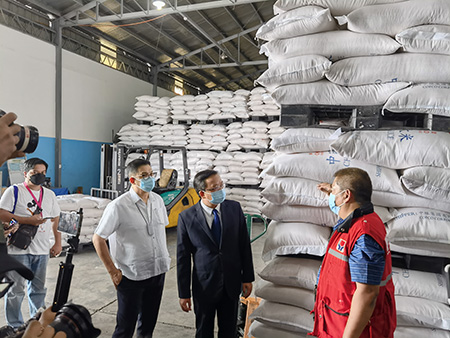 黃溪連參觀了大米存儲倉庫和分裝工廠,並將分裝完成的“家庭裝大米救濟包”移交給社會福利與發展部官員及災民代表。普里瓦多代表在災區救災的菲社會福利與發展部部長包蒂斯塔,對中方的及時慷慨援助致以衷心感謝,表示中國援助的大米是在菲最需要的時候送來的珍貴禮物,為菲政府的救災工作提供了及時有力的支持。