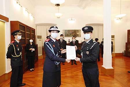 獲得行為功績徽章的人員共12名,獲得嘉獎共4名。局長郭鳳美感謝全體人員持續不斷的努力,迎難而上,全力協助保障澳門的安全。