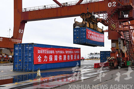 【新華社深圳2月21日電】(記者王豐、李思佳)21日22時,隨著滿載52標箱生活物資的駁船從深圳媽灣碼頭駛向香港,深圳各主要碼頭全面開通供港物資水路運輸快速通道,全力保障香港生活物資供應。