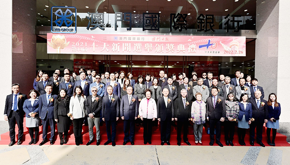 【特訊】2月26日,由澳門國際銀行與澳門日報聯合舉辦的第44屆澳門“十大新聞選舉”活動頒獎典禮於澳門國際銀行大廈總行營業廳舉行。澳門日報讀者公益基金會會長賀定一,澳門日報社長陸波、副社長兼總經理溫能漢、總編輯崔志濤、常務副總編輯蔡彩蓮,澳門國際銀行總經理焦雲迪、副總經理陳偉成、胡倫、吳斯亮等嘉賓以及27家贊助商代表出席典禮。