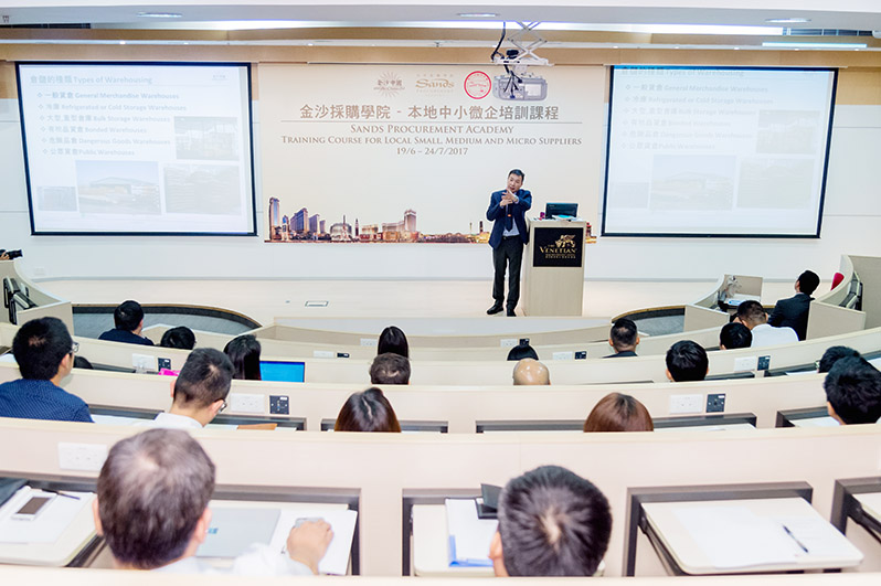 金沙採購學院的培訓對象為本澳中小企業、微企、青創企業及澳門製造企業。學院旨在與本地供應商分享業務知識及營商技能,協助他們提升與像金沙中國般的大型國際客戶合作的經驗與能力。此免費課程是行内首個同類型課程,由不同領域的資深人員授課,六門課程内容涵蓋質量保障管理、澳門勞動關係法基礎、物流管理、供應商行為準則、採購合同基礎及採購流程和系統概覽,歷屆學員的反饋均十分正面。目前共有330家本地中小微企供應商成功畢業,所有畢業學員均獲頒授證書,並享有同等條件下優先採購的機會。