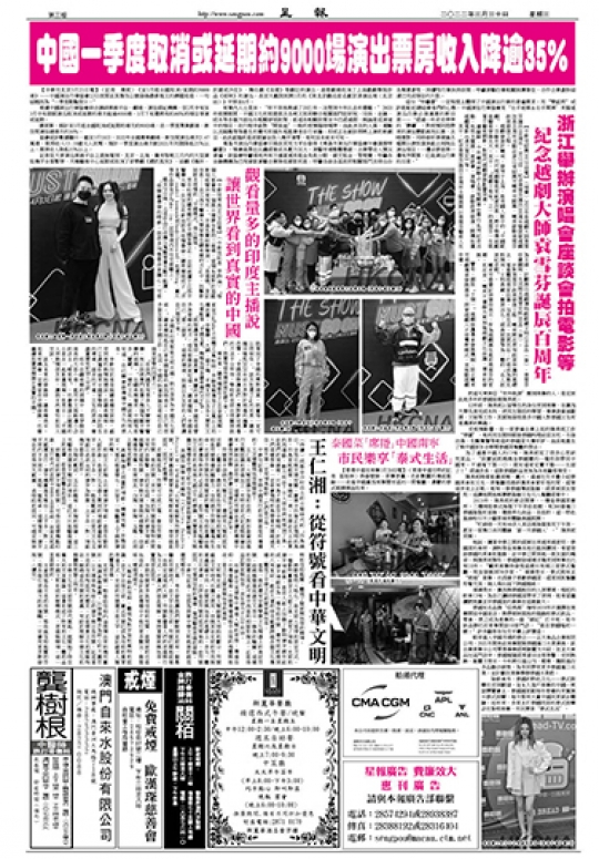 中國一季度取消或延期約9000場演出票房收入降逾35%