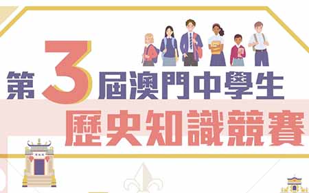 【特訊】由澳門基金會及其歷史文化工作委員會、澳門歷史教育學會及澳門廣播電視股份有限公司聯合主辦、澳門特別行政區政府文化局及澳門科技大學圖書館支持之“第三屆澳門中學生歷史知識競賽”將於2022年4月10日(星期日)在海星中學舉行初賽。