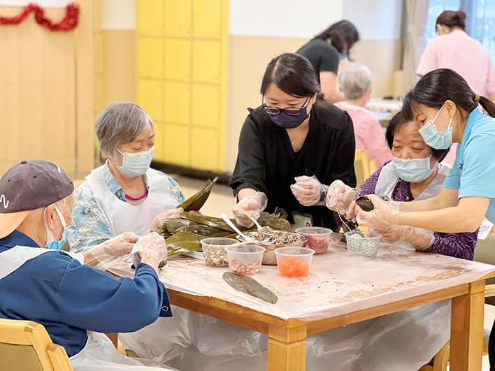 另外,端陽佳節是歷史悠久的中國傳統節日,向來有划龍船和吃糭子的傳統習俗。藉著端午節的到來,母親會安老院日前舉辦了「"粽"要節日」活動讓院友們歡度佳節。活動安排了應景的互動小遊戲「龍舟掌舵手」,利用自製紙船及紙箱水道,長者們搧動龍舟前行,體驗賽龍划舟的樂趣,促進身心運動。同時更邀請長者分享端午節的傳統習俗,展示包糭子的手藝,大家歡聲笑語,最後一同品嘗親手製作的節慶成品,渡過愉快的端午節。母親會安老院希望透過活動,喚醒院友的記憶及增加認知能力,保持身心靈健康。