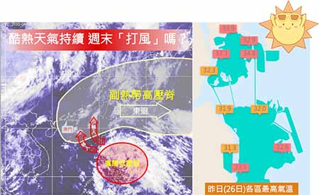 【特訊】氣象局表示,受副熱帶高壓的影響,預計本澳酷熱天氣未來兩三日仍然會維持。氣象局又提到,現時位於菲律賓附近的廣闊低壓區正逐漸發展,據目前的資料顯示,生成熱帶氣旋的機會較高,當局會密切留意。