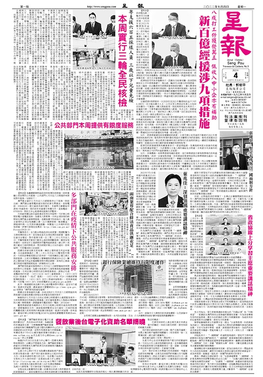 【特訊】自本波疫情爆發以來,在南光南粵兩間公司以及本澳業界的全力配合和支持下,本澳鮮活食品供應量雖大幅增加,但一直保持供應和價格穩定,由六月十九日起,供澳蔬菜逾三千五百噸、水果逾一千五百噸、蛋品逾九百萬隻、活豬逾四千七百頭,較疫情前上升五成。此外,維生支援小組向紅碼大廈住戶配送的蔬菜凍肉食物包也得到兩南公司以及本澳業界的積極配合,保供保質,確保紅碼居民的基本食物需求。