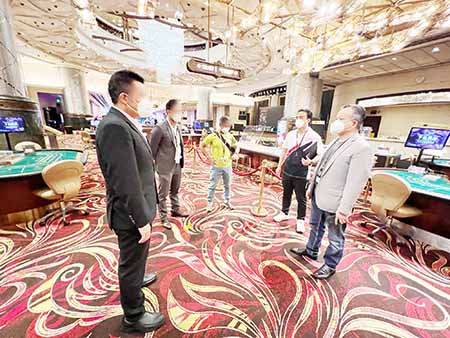 【特訊】本澳於本月廿三日零時起進入疫情防控「鞏固期」,「鞏固期」內全澳娛樂場將有限度開放,但須嚴格執行衛生當局的防疫指引內相關措施。博彩監察協調局人員到娛樂場進行巡查,監察防疫措施的落實情況,確保衛生安全。