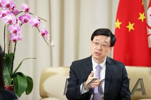 他重申,特區政府堅決維護國家主權和領土完整,維護一個中國的原則,對任何外部勢力干預中國內部事務堅決反對,並全力支持和配合中央採取的必要措施。
