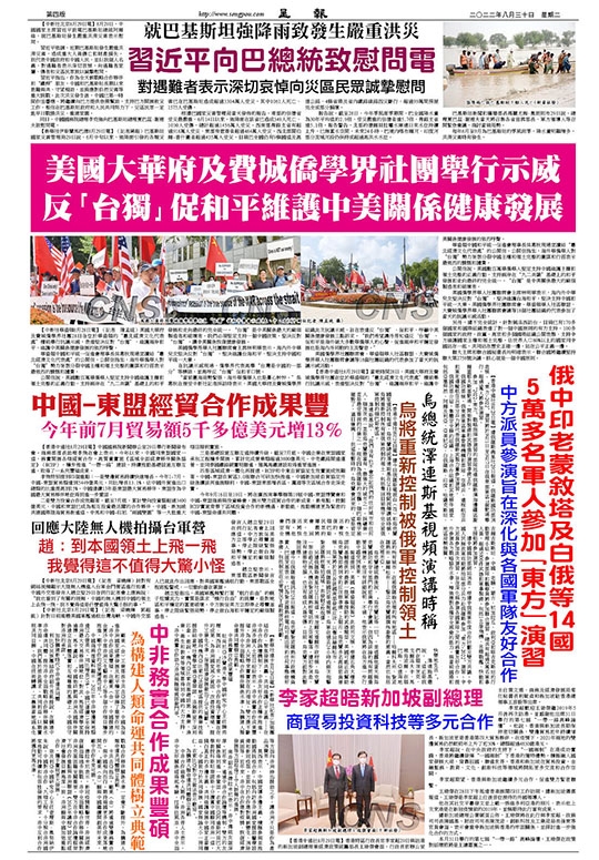 美國大華府及費城僑學界社團舉行示威 反「台獨」促和平維護中美關係健康發展