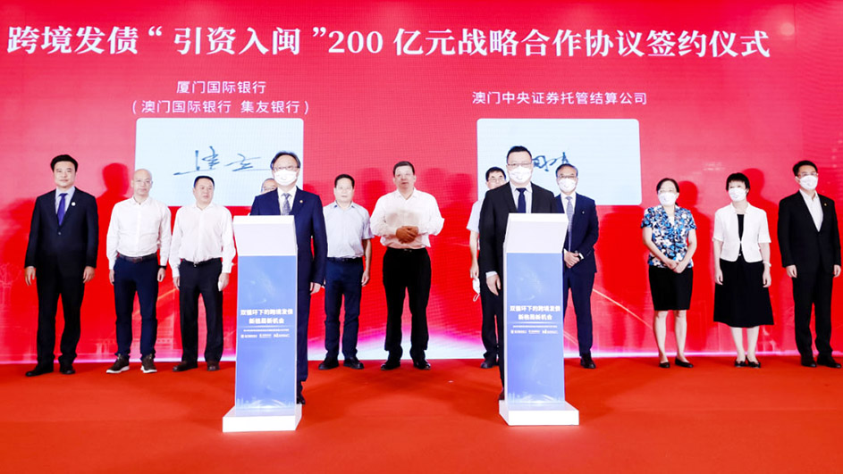 當天,2022年金融資本服務實體經濟福建創新發展大會之“雙循環下的跨境發債新格局新機會”子論壇暨跨境發債“引資入閩”200億元戰略合作協議簽約儀式在福州舉行。本次活動由福建省地方金融監督管理局、福建省人民政府國有資産監督管理委員會聯合主辦,澳門國際銀行及廈門國際銀行、澳門中央證券托管結算公司承辦,澳門金融管理局、澳門證券基金行業協會、澳門數字中國科技聯盟,福建省各地市金融局、各地市國資委,50多家福建省屬及各地市屬國有企業、民營企業參與。