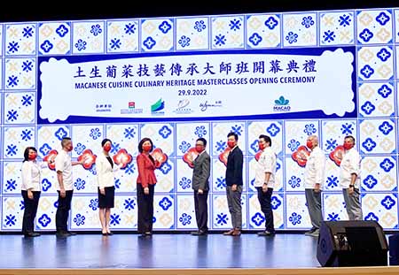 「土生葡菜技藝傳承大師班」名廚大師技藝展示系列活動開幕典禮暨首場廚藝演示昨日於永利澳門宴會廳舉行。首場廚藝演示由美心亨利團隊主理,演示非洲雞及葡式免治兩道菜式,接續的六場將邀請澳門旅遊學院、澳門廚藝協會、澳葡之家和Neta Club Cooking Studio的廚師,以及兩名土生葡人美食作家主理。旅遊局副局長程衛東、旅遊學院院長黃竹君、永利渡假村(澳門)股份有限公司總裁兼常務董事陳志玲、教青局中學教育處處長梁怡安等出席首演活動。